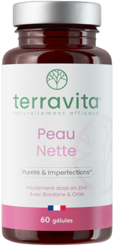 Peau Nette, un concentré de zinc, bardane, biotine et propolis, qui purifie, régule et aide la peau à respirer de nouveau.